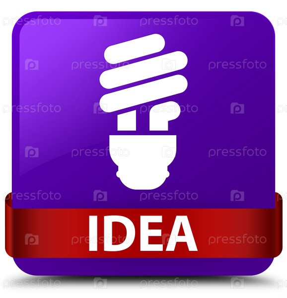 Идея (икона лампочки) фиолетовая квадратная кнопка красная лента посередине