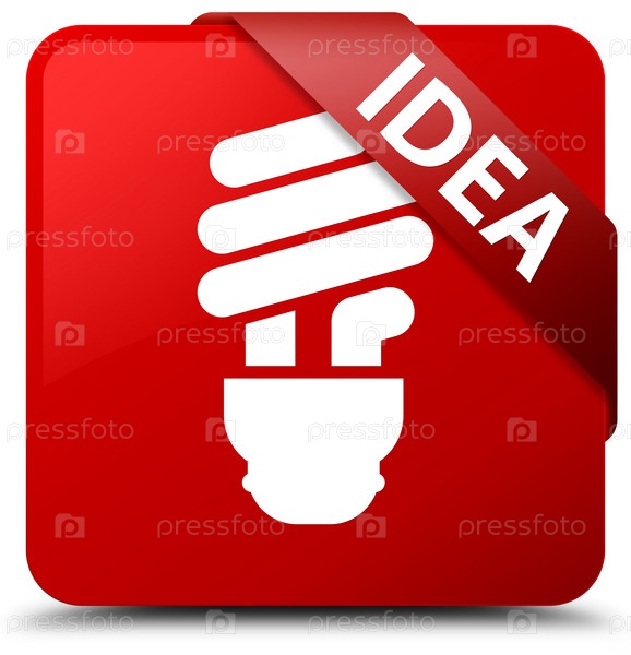 Идея (икона лампочки) красная квадратная кнопка Красная лента в углу