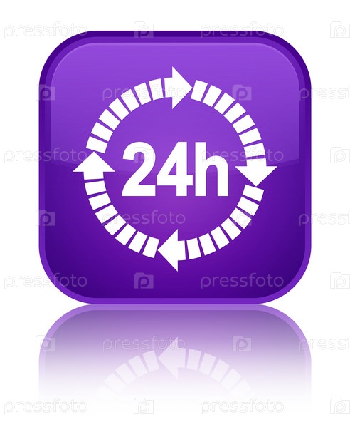 Икона доставки в течение 24 часов специальная фиолетовая квадратная кнопка