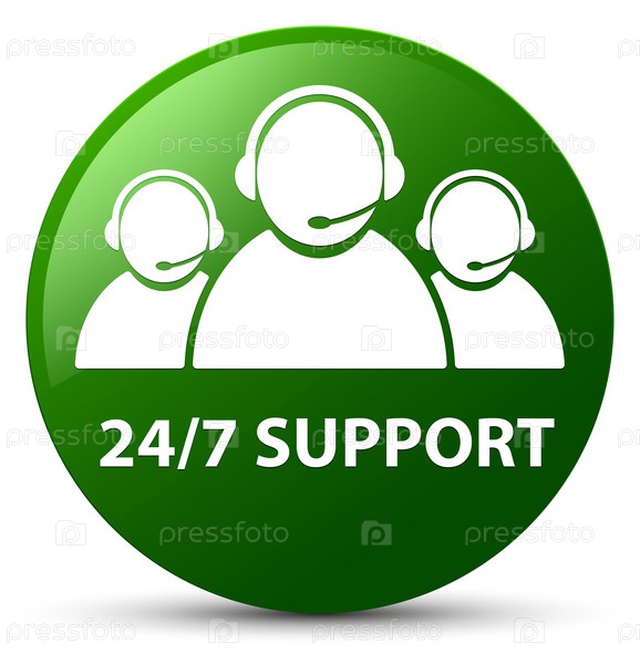 Поддержка 24/7 (икона команды по уходу за клиентами) зеленая круглая кнопка