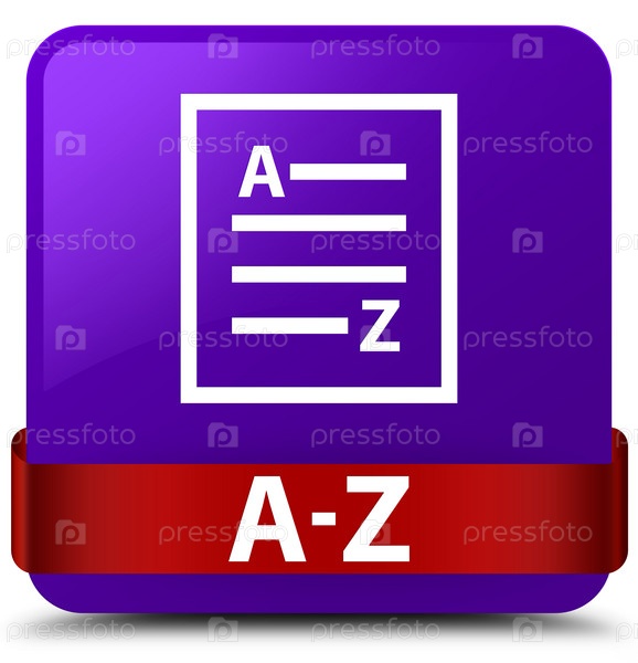A-Z (икона страницы списка) фиолетовая квадратная кнопка красная лента посередине