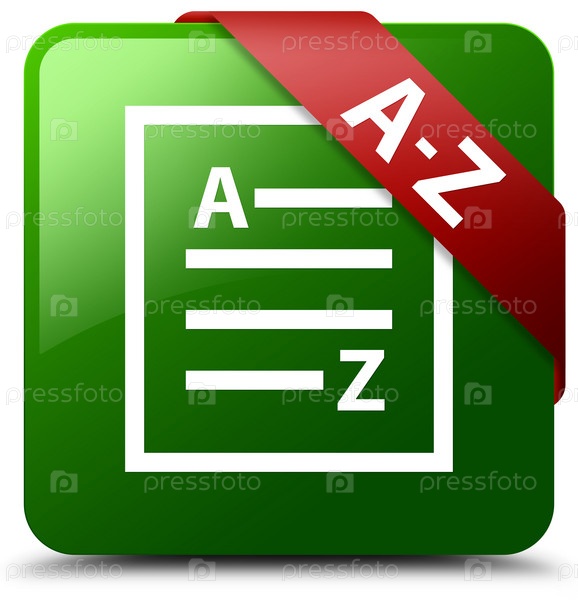 A-Z (икона страницы списка) зеленая квадратная кнопка красная лента в углу