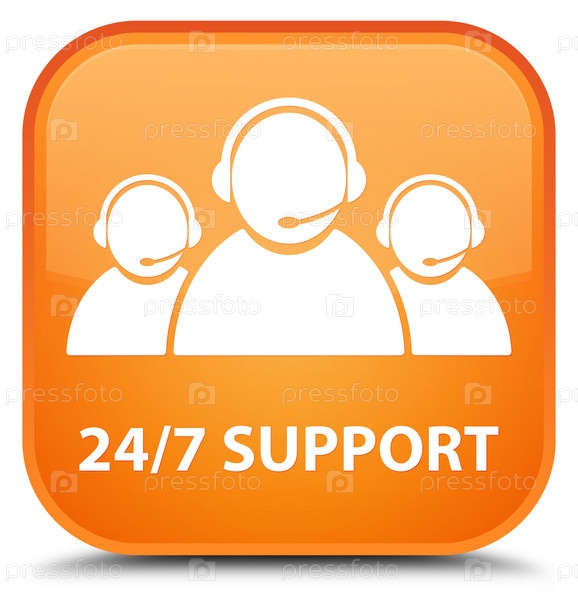 Поддержка 24/7 (икона команды по уходу за клиентами) специальная оранжевая квадратная кнопка