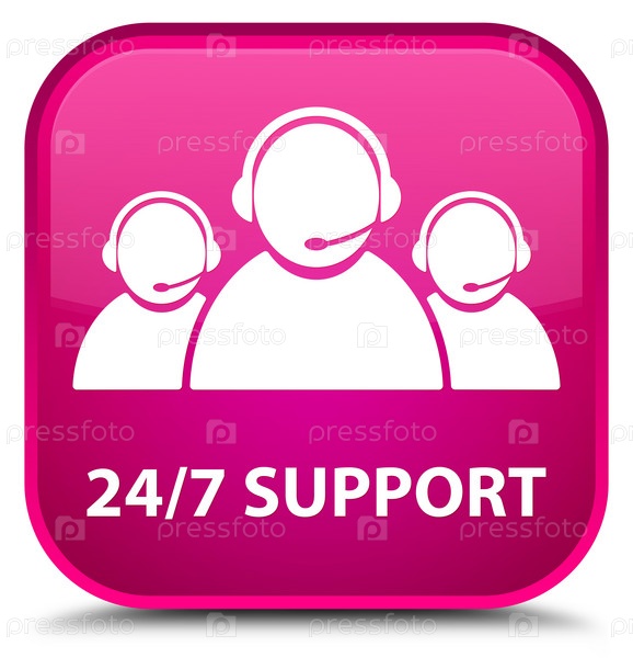 Поддержка 24/7 (икона команды по уходу за клиентами) специальная розовая квадратная кнопка