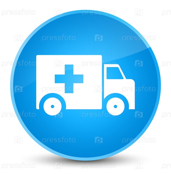 Икона машины скорой помощи с элегантной сине-циановой круглой кнопкой