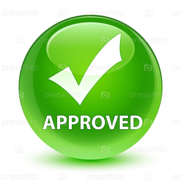 Approved (validate icon) стеклянно-зеленая круглая кнопка