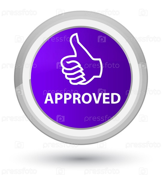 Утверждено (икона пальцев вверх) первичная фиолетовая круглая кнопка