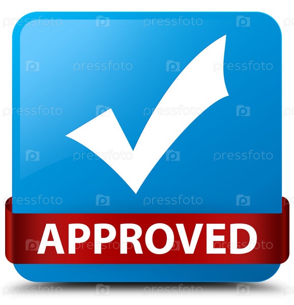 Approved (validate icon) синий синий квадратный кнопка красная лента посередине