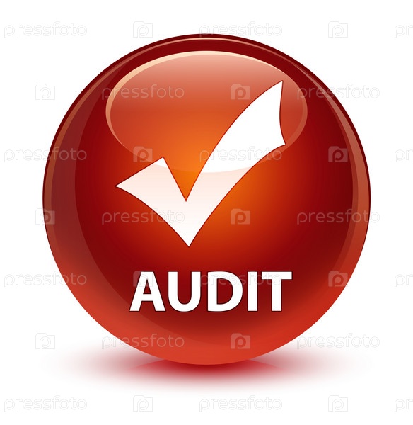 Аудит (икона проверки действительности) стеклянная коричневая круглая кнопка