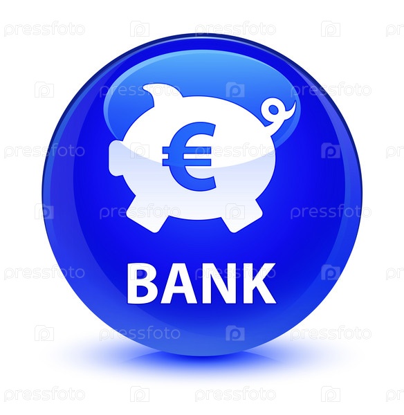 Банк (piggy box euro sign) стеклянная голубая круглая кнопка