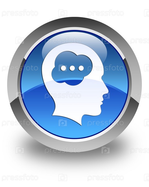 Икона головы мозга блестящая голубая круглая кнопка