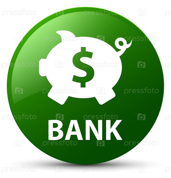 Банк (знак доллара свиного ящика) зеленая круглая кнопка
