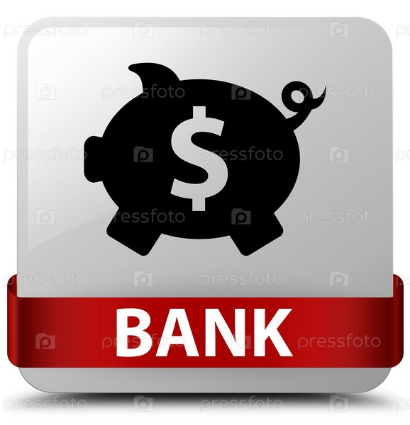 Банк (знак доллара свиного ящика) белая квадратная кнопка красная лента посередине
