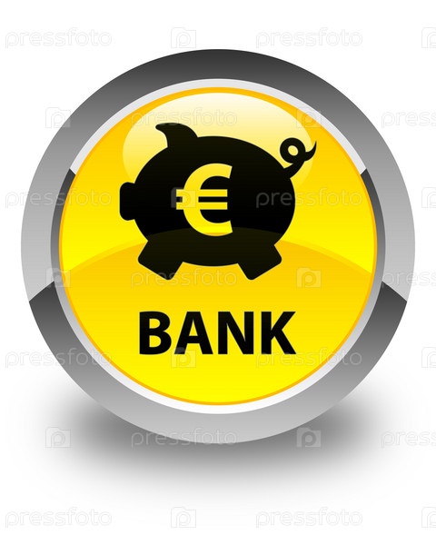 Банк (piggy box euro sign) глянцевая желтая круглая кнопка