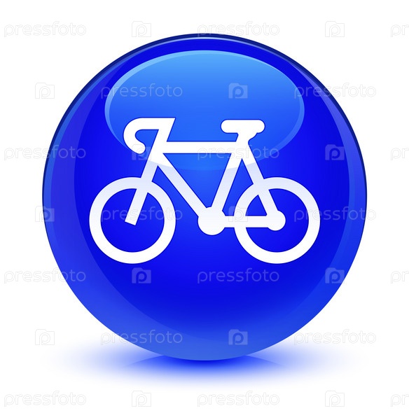 Икона велосипеда стеклянная голубая круглая кнопка