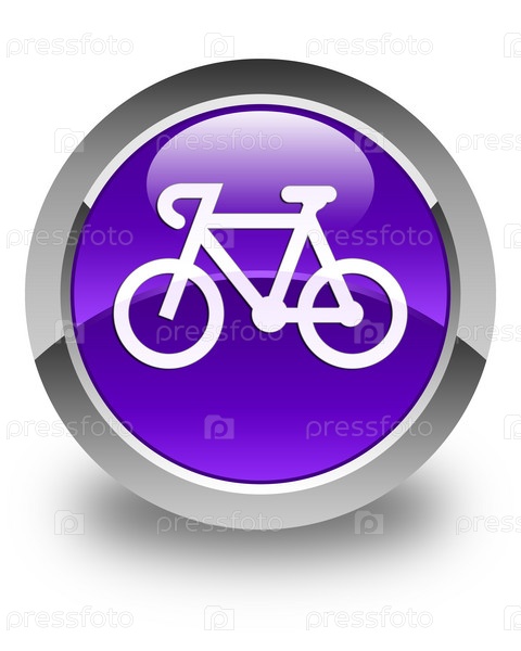 Икона велосипеда блестящая фиолетовая круглая кнопка