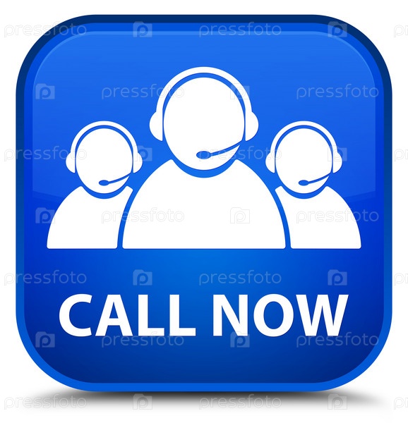 Позвоните сейчас (икона команды по обслуживанию клиентов) специальная синяя квадратная кнопка