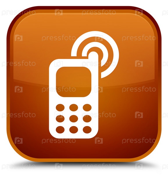 Икона звонка сотового телефона специальная коричневая квадратная кнопка