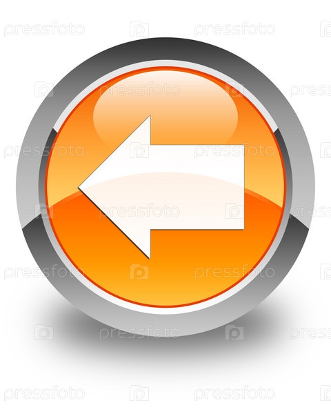 Икона стрелки 'Назад' блестящая оранжевая круглая кнопка