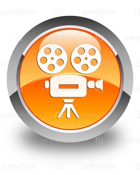 Икона видеокамеры блестящая оранжевая круглая кнопка