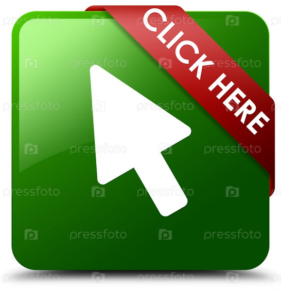 Нажмите здесь зеленый квадратный кнопка красная лента в углу