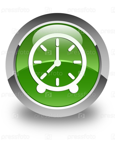 Икона часов глянцевая мягкая зеленая круглая кнопка