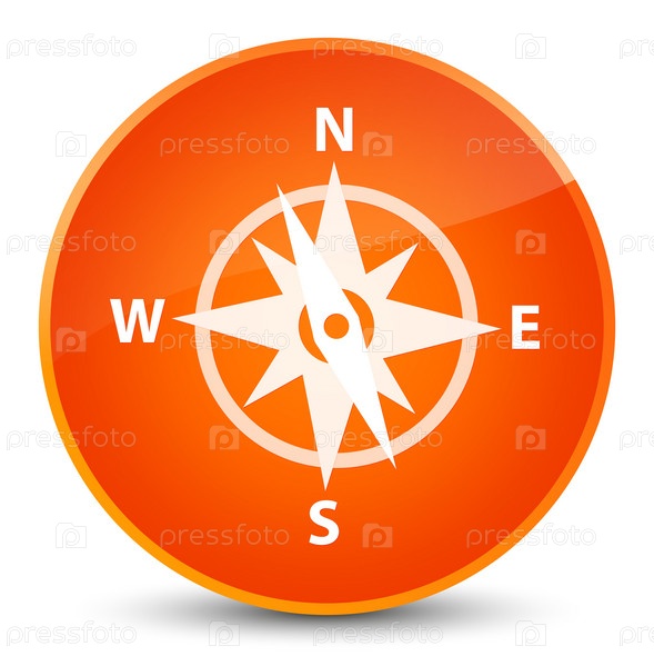 Икона компаса элегантная оранжевая круглая кнопка