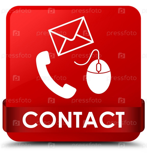 Контакт (электронная почта телефона и значок мыши) красный квадратный кнопка Красная ленточка посередине