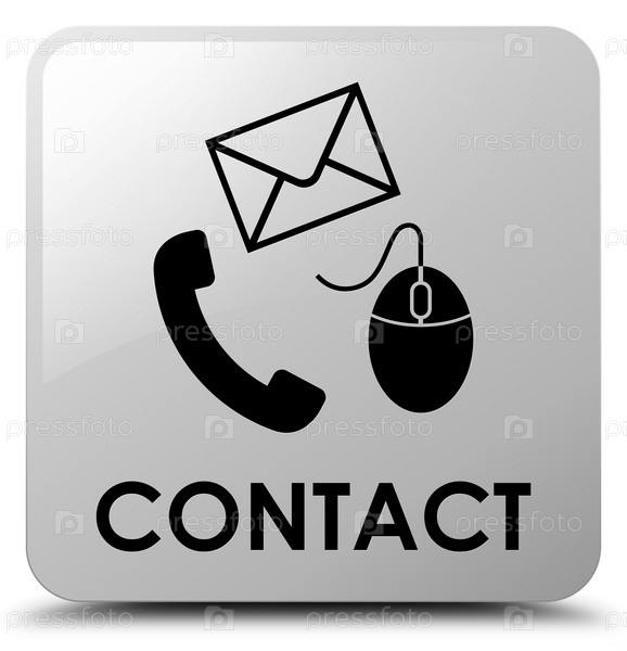 Контакт (электронная почта телефона и значок мыши) белая квадратная кнопка
