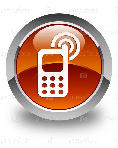 Икона звонка сотового телефона блестящая коричневая круглая кнопка