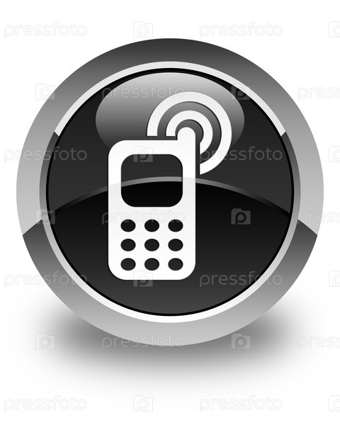 Икона звонка сотового телефона глянцевая черная круглая кнопка