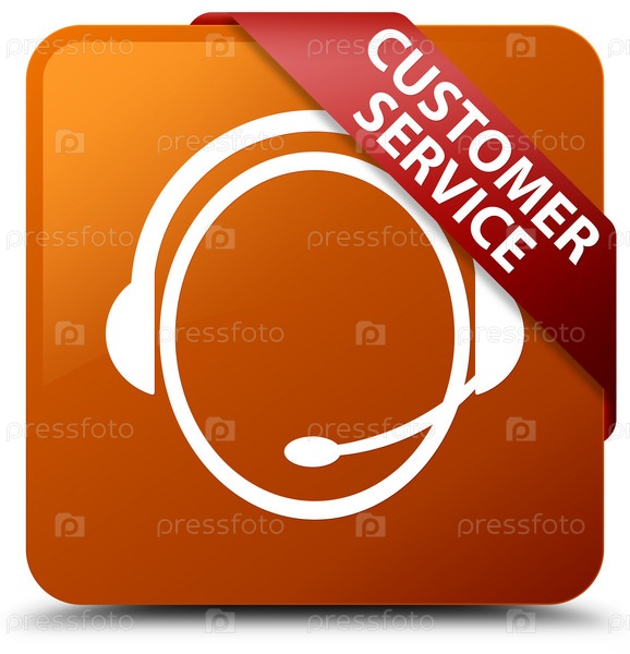 Служба поддержки клиентов (икона обслуживания клиента) коричневая квадратная кнопка красная лента в углу