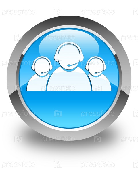 Икона команды обслуживания клиентов блестящая синяя синевая круглая кнопка