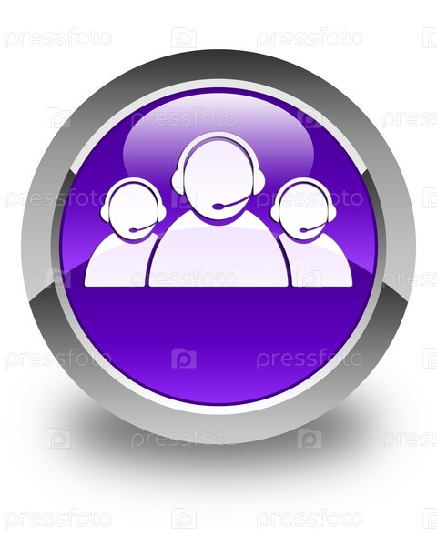 Икона команды обслуживания клиентов блестящая фиолетовая круглая кнопка