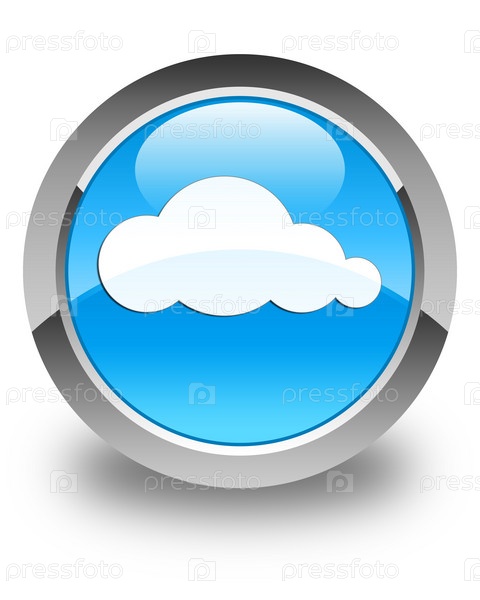 Икона облака глянцевая синяя сине-циановая круглая кнопка