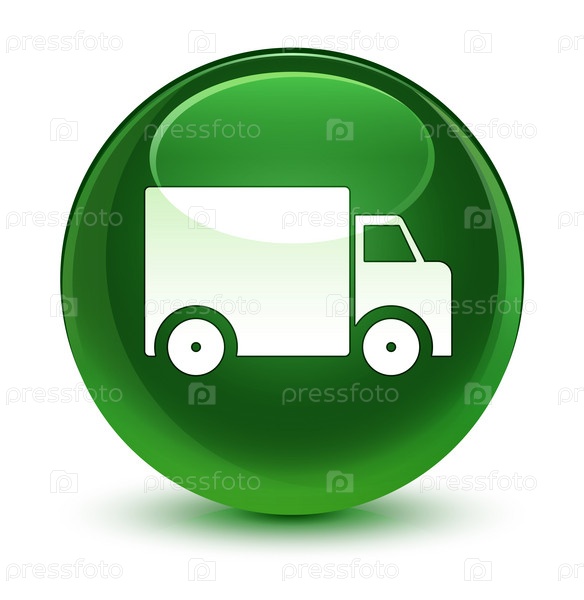 Икона грузовика для доставки стеклянная мягкая зеленая круглая кнопка