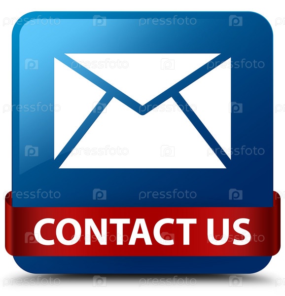 Связаться с нами (икона электронной почты) синяя квадратная кнопка красная лента посередине