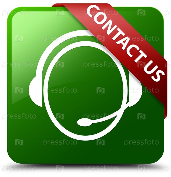 Свяжитесь с нами (икона обслуживания клиентов) зеленая квадратная кнопка красная лента в углу
