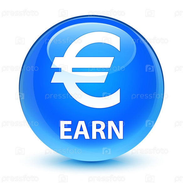 Заработать (сигнал евро) стеклянный цыановый синий круглый кнопку