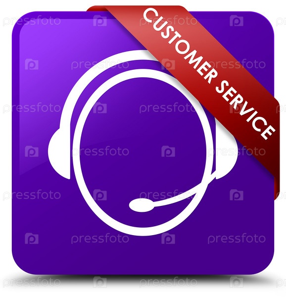Служба поддержки клиентов (икона обслуживания клиента) фиолетовая квадратная кнопка красная лента в углу
