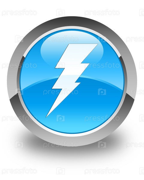 Икона электричества блестящая цыановая синяя круглая кнопка