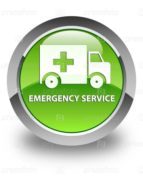 Служба экстренной помощи глянцевая зеленая круглая кнопка
