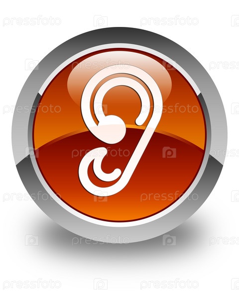 Икона ушей блестящая коричневая круглая кнопка