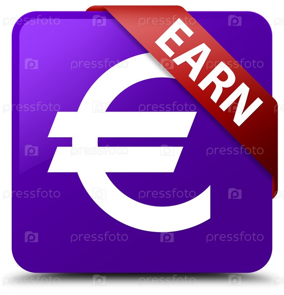 Заработать (знак евро) фиолетовый квадратный кнопка красная лента в углу