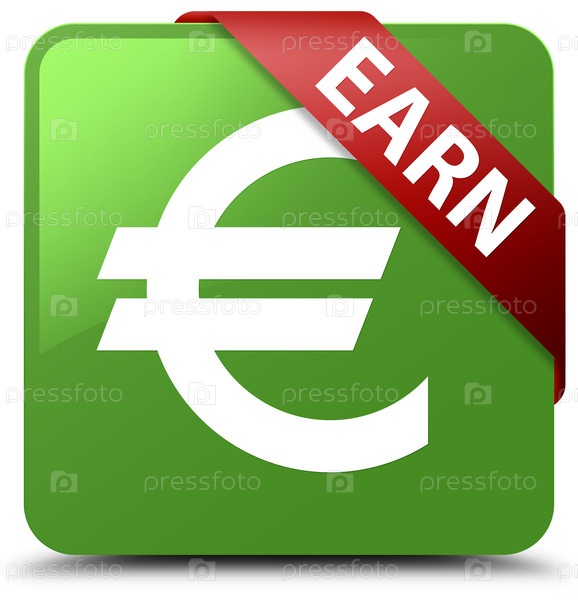 Заработать (знак евро) мягкий зеленый квадратный кнопка красная лента в углу