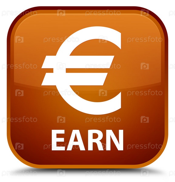 Заработать (знак евро) специальная коричневая квадратная кнопка