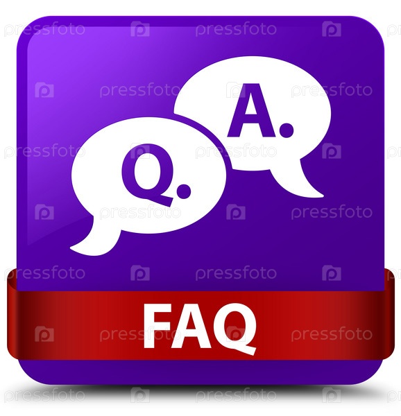 Faq (икона пузыря вопросов и ответов) фиолетовая квадратная кнопка красная лента посередине