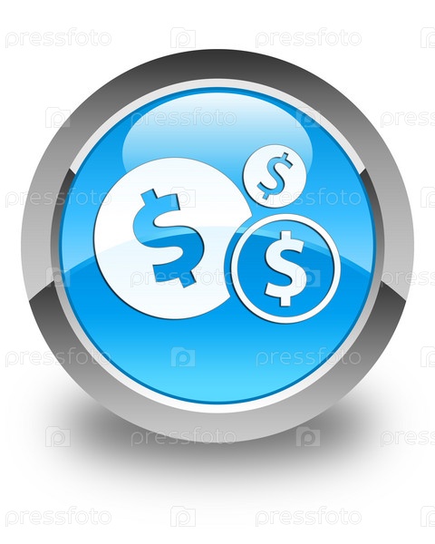 Финансы знак доллара икона блестящий синий цвет голубой круглый кнопка