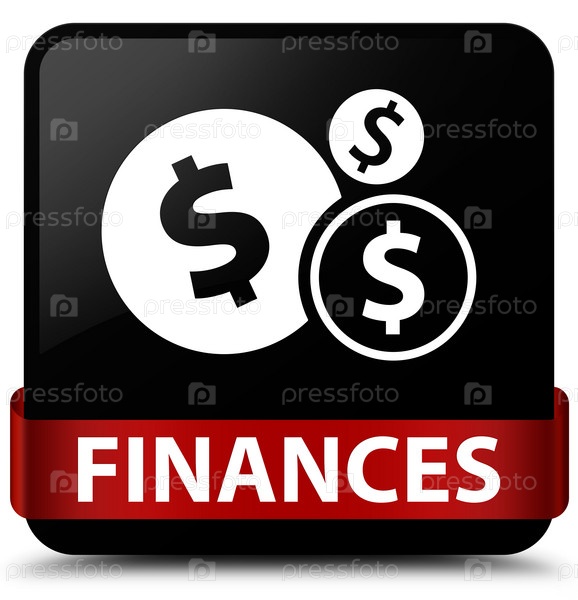 Финансы (знак доллара) черная квадратная кнопка красная лента посередине