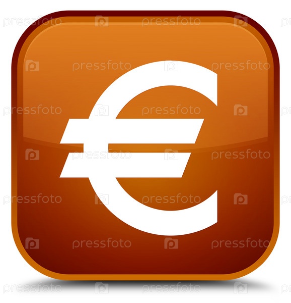 Икона знака евро специальная коричневая квадратная кнопка